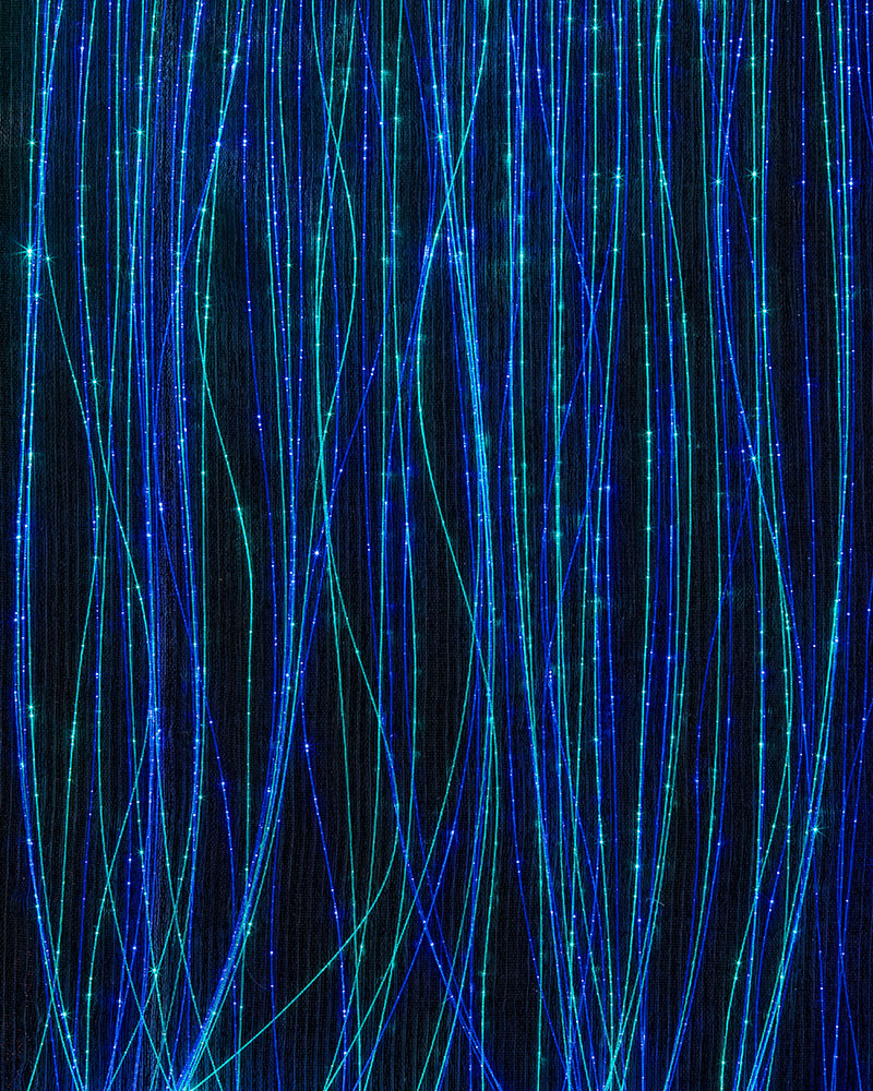 Su Velo, Organza, Sahara, Spider e Organza, la luce può essere attivata in una configurazione a doppia cromia alternata, ottenuta attraverso un cablaggio dedicato che distribuisce fibre ottiche di due colori differenti secondo un ritmo preciso e controllato.