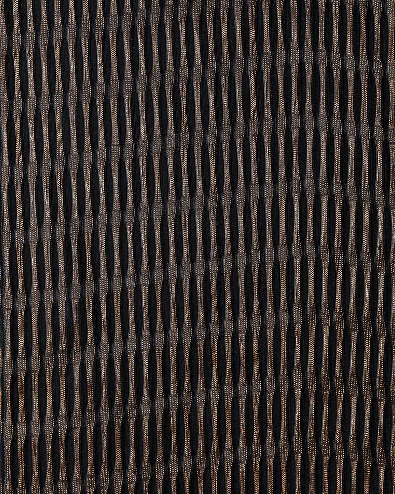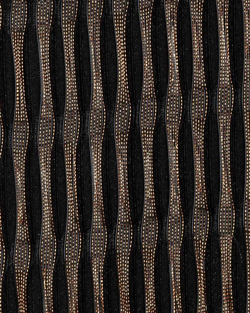 La luce non si limita ad emergere dal tessuto: viene guidata dalle linee verticali, creando una scenografia luminosa raffinata, fatta di punti scintillanti e riflessi continui. Il risultato è una superficie viva, grafica e architettonica, capace di trasformare pareti e volumi in elementi espressivi.